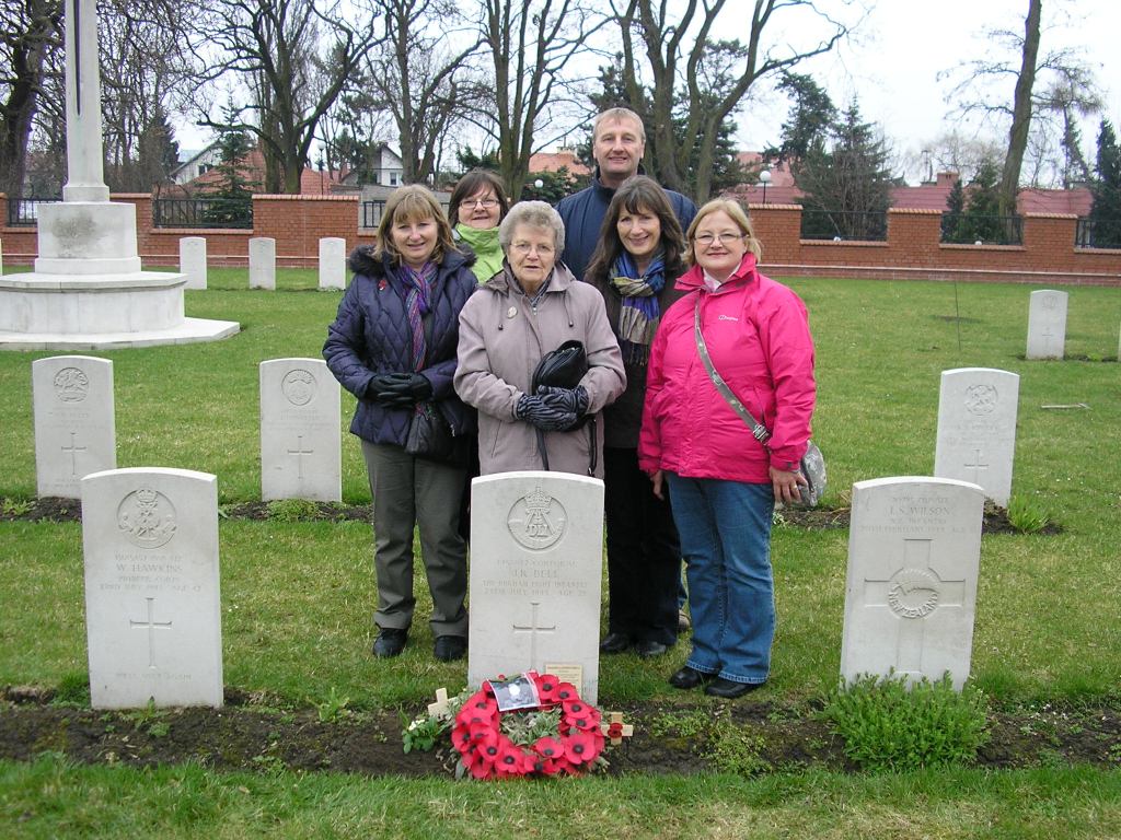 In April 2011, Hilda Bell and her 4 daughters, Glenys, Trisha, Kath and Shirley and son Alan visited Malbork Cemetery to pay respects to Corporal J.R. Bell. Hilda married Russell’s brother Jack and would have been Russell Bell’s sister-in-law had he survived the war. Their visit took them to Torun and Stalag XXA and to Forts IV, XI and XIV (the hospital). It was not possible to enter the Polish Military Base, the actual site of Fort XIII which is believed to be the location of Camp 3A where Cpl. Bell spent most of his time.