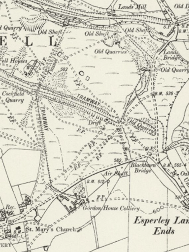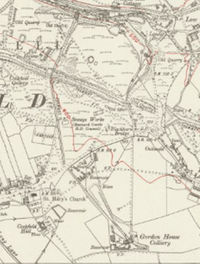 Below: 1898, A plan to show the tramway from Gordon House Colliery to the screens and sidings on the branch railway.