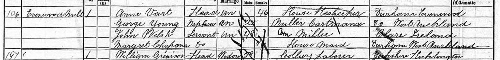 Annie, John Vart’s unmarried daughter took over Evenwood mill with the help of her nephew George Young.