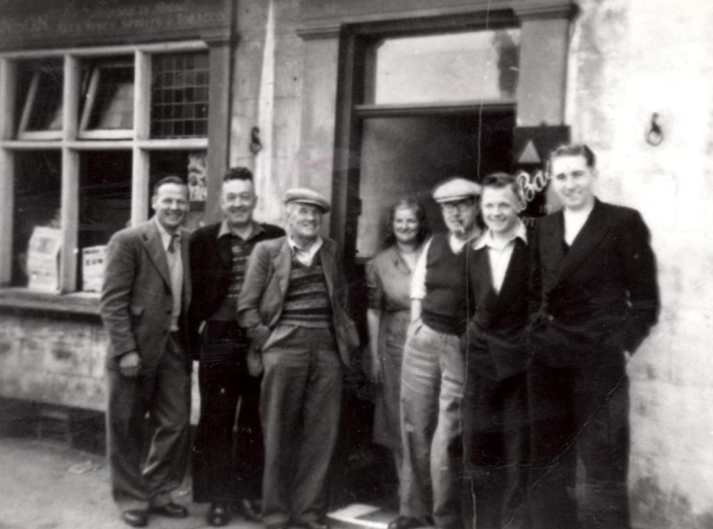 Below: 18 June 1950. Mary Ada Atkinson in the doorway. The photo includes Fred Lowson, 2nd left ?