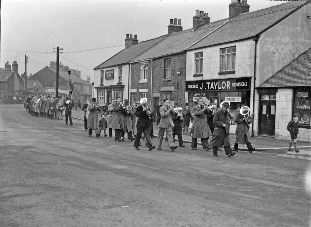 Date late 1950’s/early 1960’s? EVENWOOD BAND LEADING EVENWOOD BRITISH LEGION – THE REMEMBRANCE DAY PROCESSION PASSING THE QUEEN’S HEAD