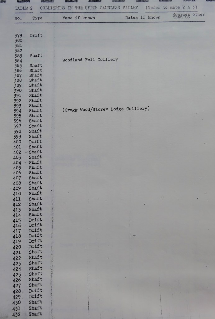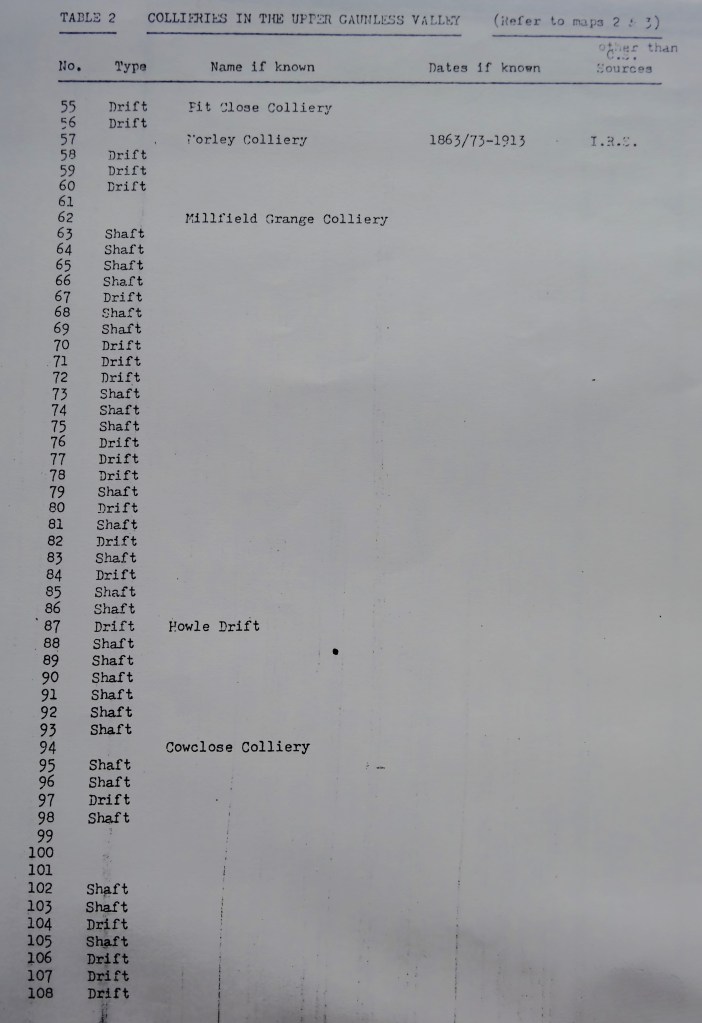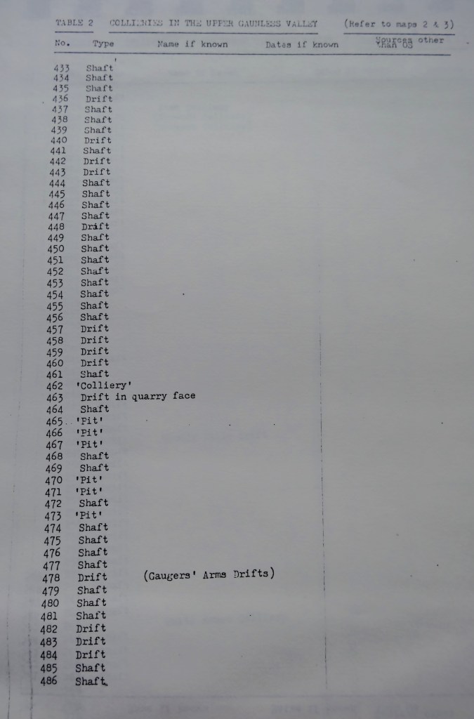 TABLE 2: COLLIERIES IN THE UPPER GAUNLESS VALLEY (Refer to Maps 2 & 3)