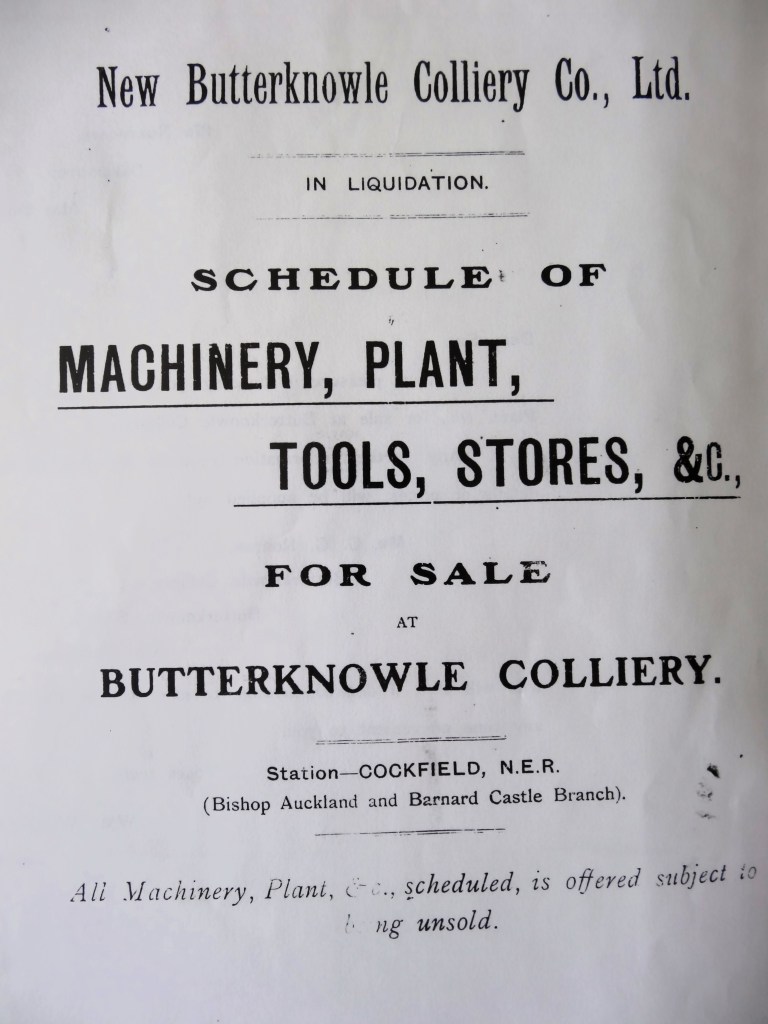 Above: New Butterknowle Coal Co. Ltd. – Liquidation Sale Catalogue front page.
