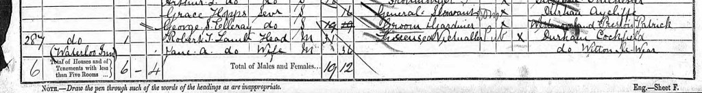 1891 census record: ROBER T. LAMB, Licenced Victualler, Waterloo Inn