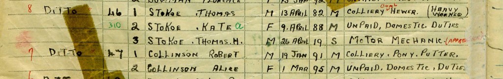 Isabelle’s younger brother, serving as 36618 Private Thomas Henry Dunn, 11th Battalion, the Durham Light Infantry died of wounds 26 December 1916. It can be safely assumed that Isabelle named her son in honour of her younger brother. Thomas’ mother died in 1922 [3] and in 1936 his father married Kate A. Watson.[4] By 1939, the Stokoe family lived at 8 Brookside, Evenwood (otherwise known as Vart’s Yard). Thomas (senior) worked as a coal miner [hewer] and Thomas an apprentice motor mechanic which infers that he was not yet mobilised. [5]