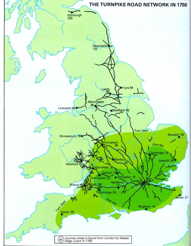 Below, 1750, a map to show the TURNPIKE ROAD Network