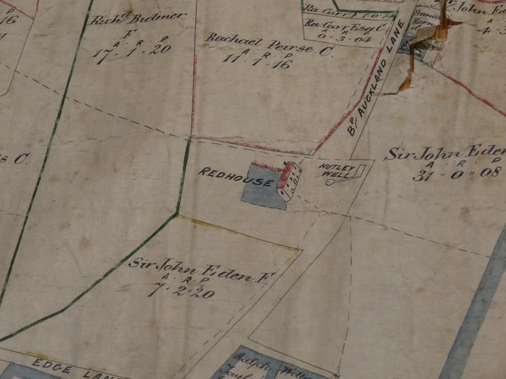 Where was the Red House? Below, this 1765 plan shows the Red House at Etherley on Bishop Auckland Lane, north of Edge Lane which was the road from Toft Hill to Woodland (then known as the Edge).
