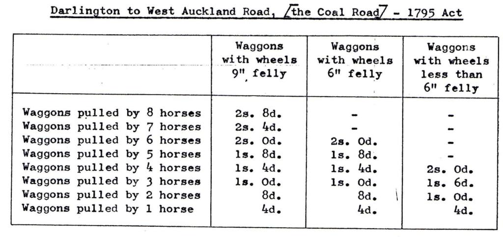 - 1795 Staindrop to Cockerton Bridge, 12 miles long and had 3 toll gates at Coniscliffe Moor, Ingleton and Killerby.