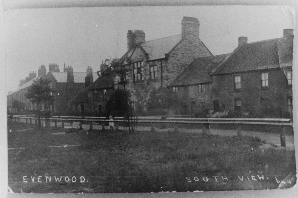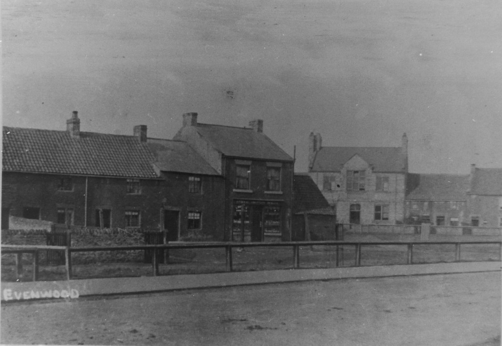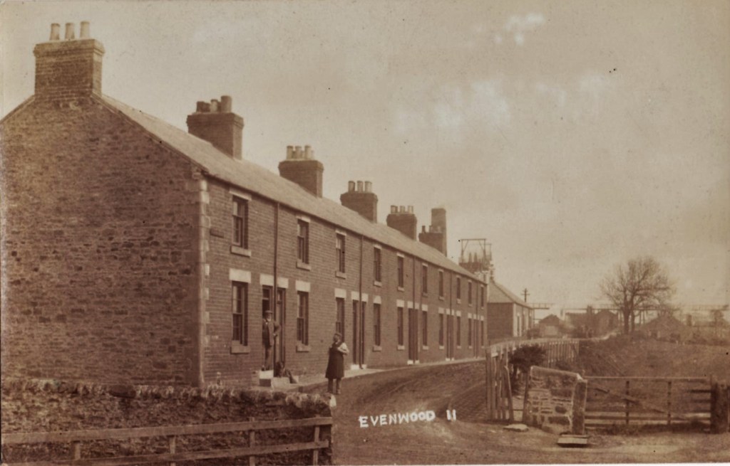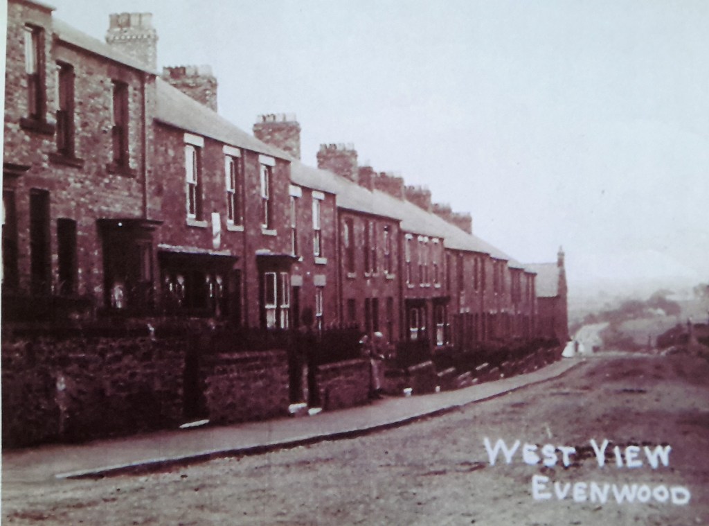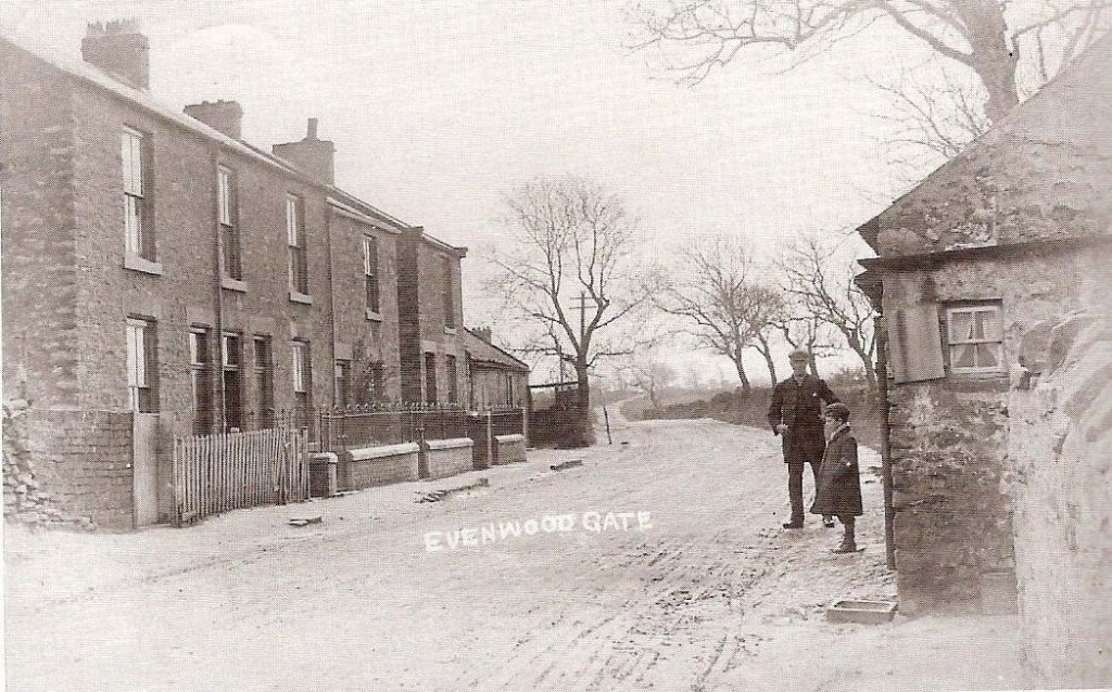 Below: About 1900, Welcome to Evenwood, Farncombe Terrace on the left and West View on the right.