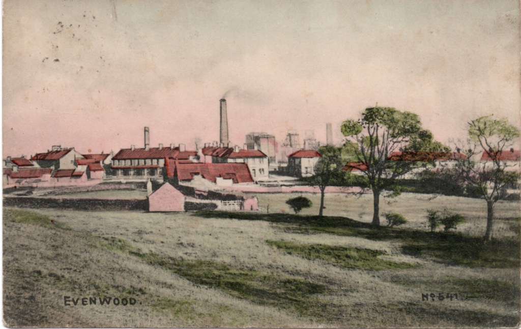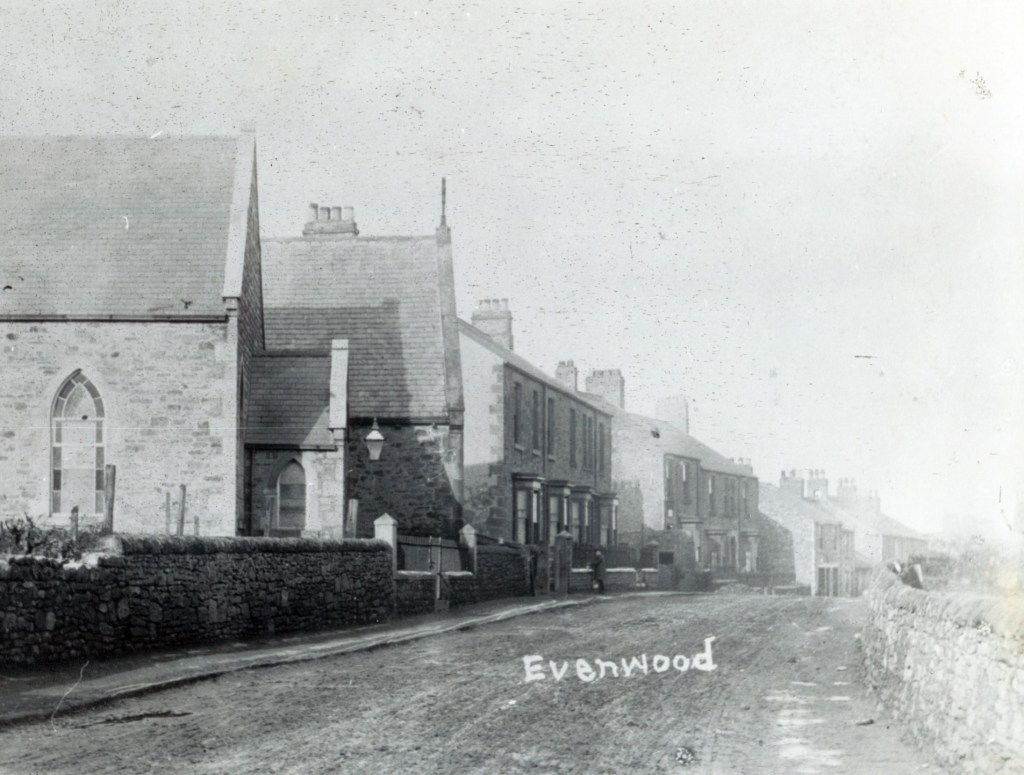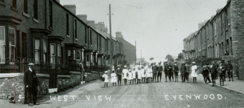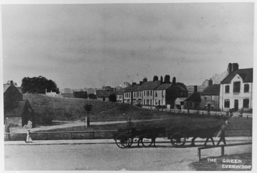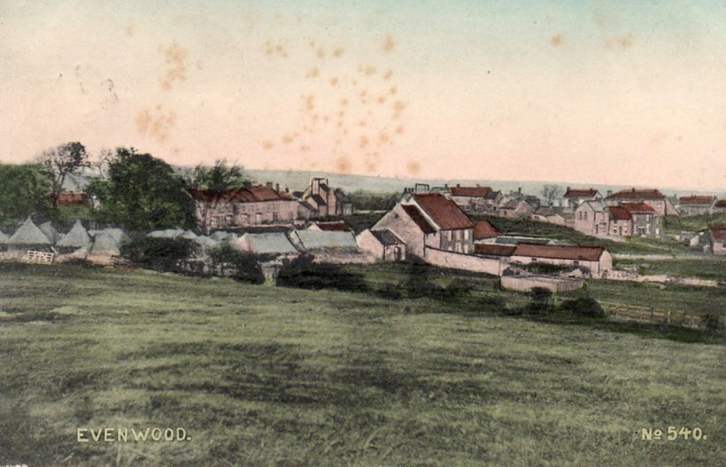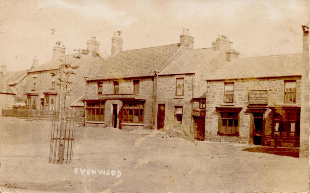 Below: About 1900, Welcome to Evenwood, Farncombe Terrace on the left and West View on the right.