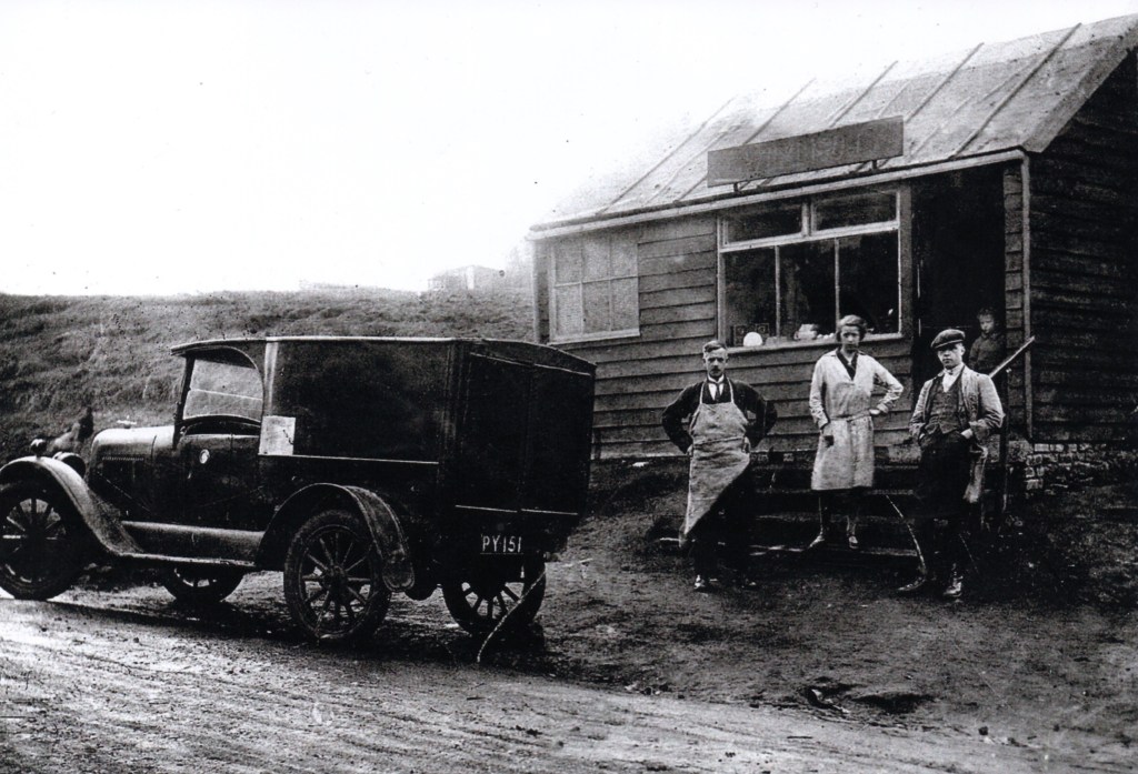 Below: Wilkinson’s Butchers Oaks Bank: Richard Wilkinson, Cissy Wilkinson & Reg Wilkinson