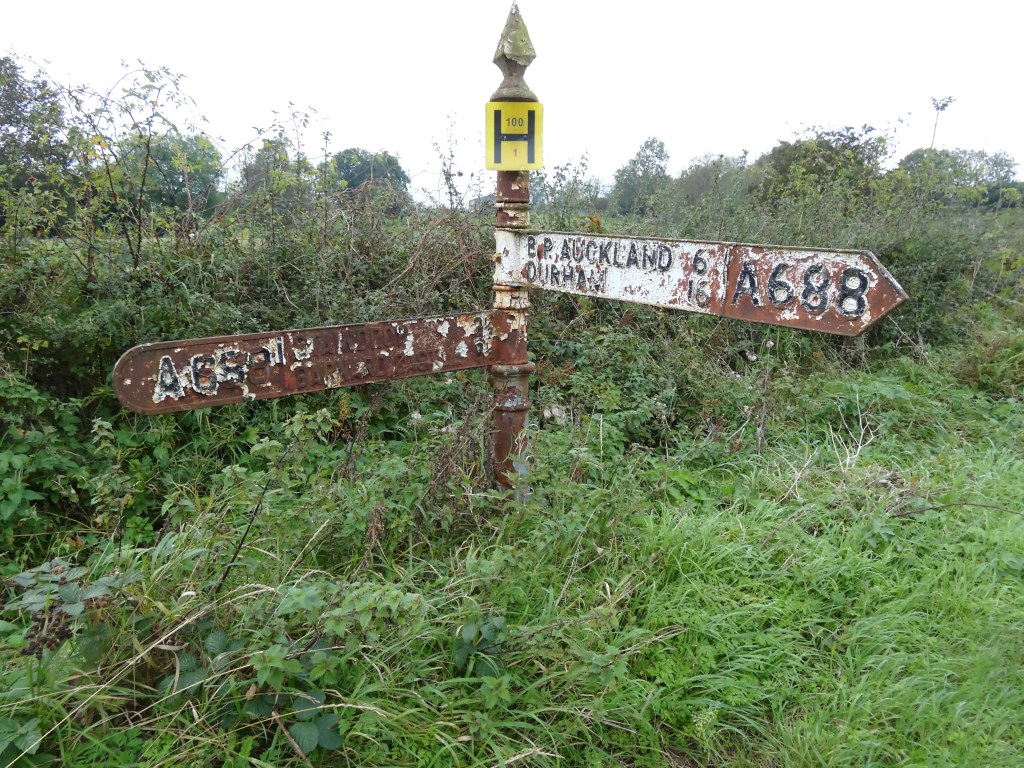 A more recent metal, black & white painted finger signpost is located near the Esperley Lane junction and informs us that Bishop Auckland is 6 miles and Durham is 16 miles to the east, Staindrop is 2½ miles and Barnard Castle is 8½ miles to the west.
