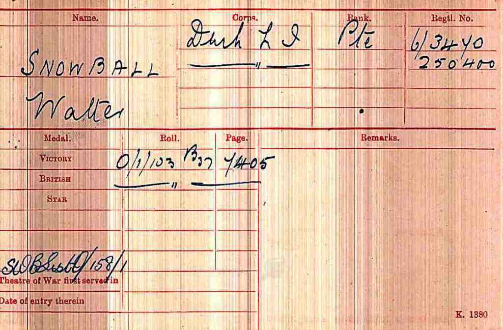 Walter Snowball, Oaks, 2nd Reserve Batt. DLI” [3]