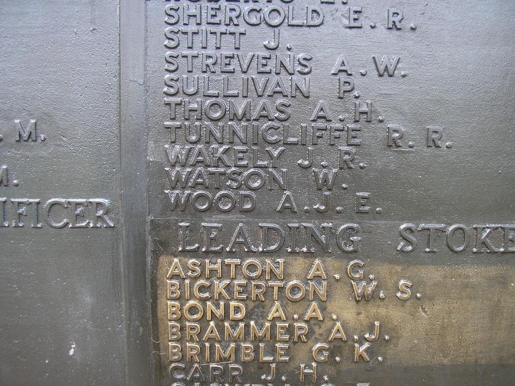 D/KX 82188 Petty Officer Walter Watson is commemorated at Panel 89 Column 2, the Plymouth Naval Memorial. After the Great War, the 3 manning ports at Chatham, Plymouth and Portsmouth were selected to house the memorials to those lost at sea. There are 15,933 sailors of the Second World War commemorated on the Plymouth Naval Memorial.