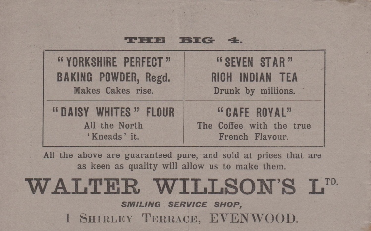 Walter De Lancey Willson was born in 1846 at Little Amwell, Bishop Stortford, Hertfordshire, the son of William and Emma Willson who were the Governor and Matron of the Union Workhouse at Bishop Stortforth. At 14 years of age, he found employment with Lingfords [famous for its baking powder] then at 16, he was recorded as a servant to Thomas May, grocer, in Marylebone, London. In 1865, Walter married Mary Ann Cooper at Sutton Courtenay, near Abingdon, Berkshire. By 1871, Walter Willson was a resident of Bishop Auckland, living at Tenters Street and described as “a Grocer’s Manager.” In 1875, aged about 29, he opened his first shop in Newgate Street, Bishop Auckland.