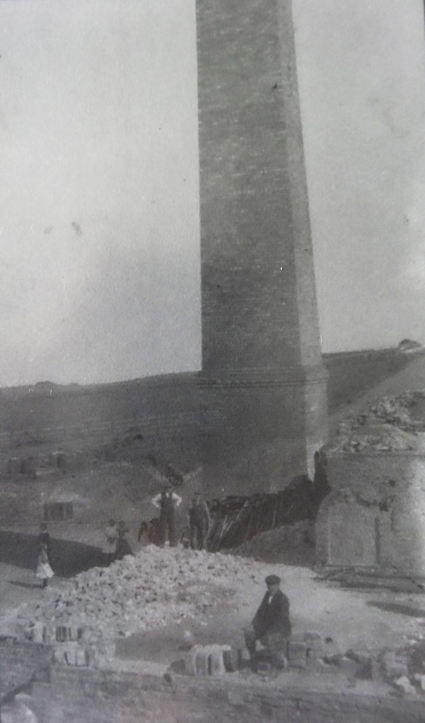 Below: The next 4 photographs show the demolition of a colliery or coke works chimney in June 1914.