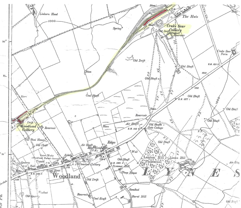 The Cargo Fleet Iron Co. Ltd (1883-1944) took over the Woodland Collieries Co. Ltd in about 1914, the coke being an essential requirement for the iron and steel industry on Teesside. The line closed about 1921 but it appears that various drift mines worked on through the 1920s into the 1930s.