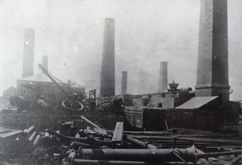 The photo shows 6 chimneys which appear to serve coke ovens.