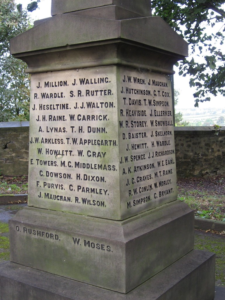 “To the glory of God and in thankful remembrance of the men of Evenwood, Ramshaw and Lands who made the supreme sacrifice during the Great War 1914 – 1918”